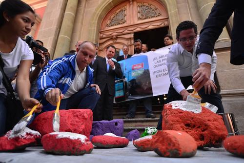 Para ello, como primera actividad en conjunto, realizaron una protesta frente a la sede del Tribunal Supremo Electoral (TSE), a donde llevaron piedras con los colores de los partidos políticos, como las que se pueden encontrar en muchas carreteras del país. Luego, las pintaron de blanco como un acto simbólico.