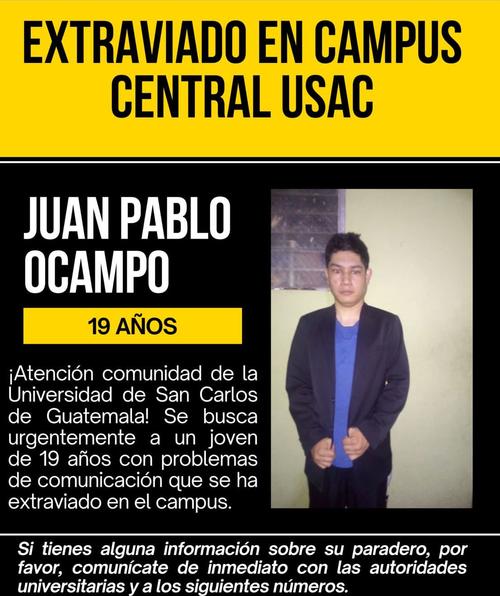 El joven de 19 años se encuentra dentro del espectro Asperger y la última vez que había sido visto era en el campus central de la Usac, pero por causas que se desconocen se habría separado del grupo.