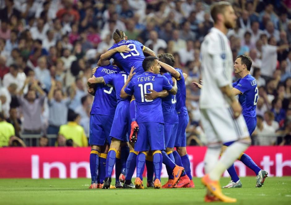 Jugadores de la Juve celebran el 1-1 ante el Real Madrid en el Bernabéu. (Foto: AFP)