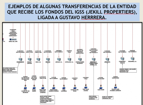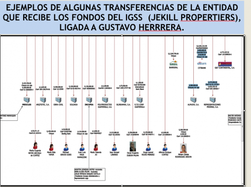 El MP y la Cicig explican que la Off Shore Jekyll Properties de la cual, Gustavo Herrera, conocido como el "Gato Herrera", es firmante, recibió la mayor parte de los 350 millones de quetzales sustraídos del IGSS y de ahí realizó una serie de transacciones.
