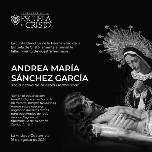 Lamentan la muerte de una joven llamada Andrea María Sánchez, socia activa de la Hermandad Escuela de Cristo de Antigua Guatemala.