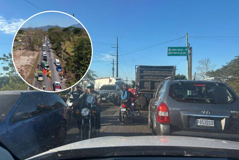 Por otro lado, en el kilómetro 61, se registra una acumulación de vehículos, ya que los conductores deben esperar debido a trabajos en el kilómetro 63 de la autopista Puerto Quetzal, pues durante la madrugada y mientras se realizaban trabajos de reparación, ocurrió un hundimiento.