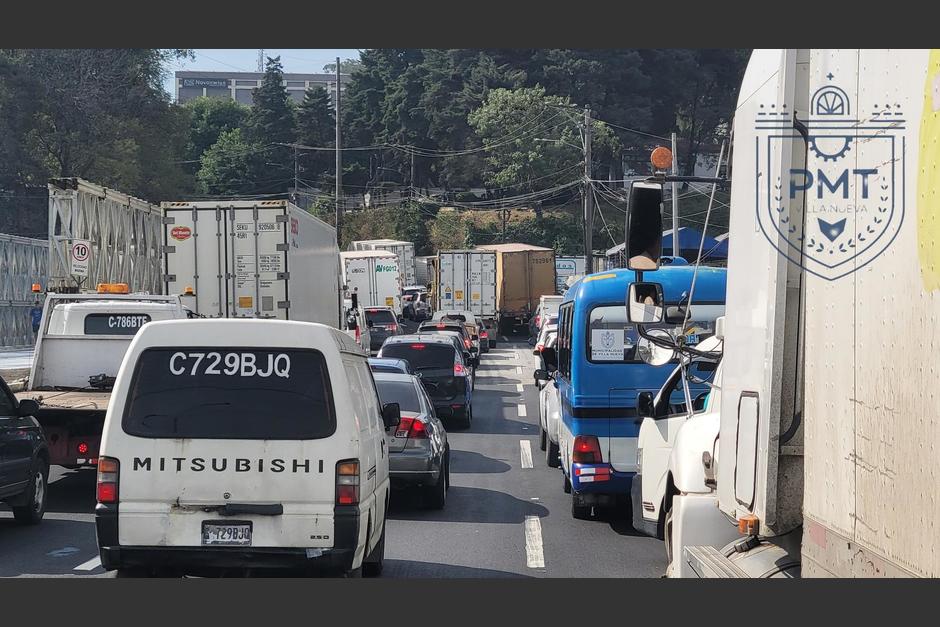 De acuerdo con Henry Quevedo, portavoz de la PMT de Villa Nueva, el tránsito hacia el sur se encuentra complicado hasta el kilómetro 14.