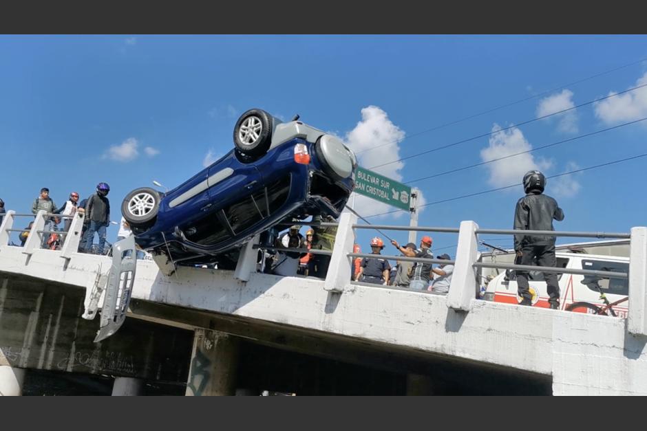 Mientras tanto, los bomberos y personas que se encontraban en el lugar sostuvieron el carro, para evitar que cayera del mencionado puente.