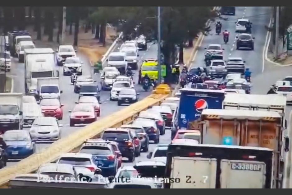 Un accidente de tránsito múltiple se registró este 14 de febrero en el Anillo Periférico, en la salida del puente El Incienso, en dirección hacia el Centro Histórico.