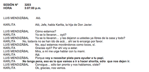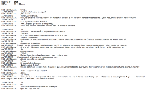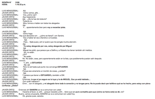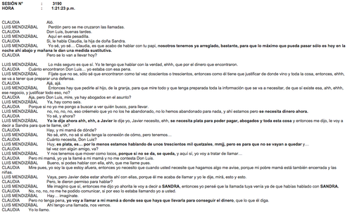 A continuación les dejamos la transcripción de los audios presentados en la audiencia de primera declaración del día de este lunes: