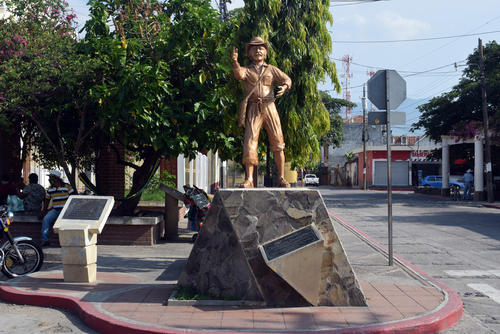 Al echar mano de la camisa a cuadros, pantalón de lona, sombrero, caites y un matate, salió a escena como "Lencho Patas Planas".
