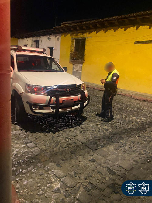 En horas de la madrugada de este domingo 13 de julio, dos vehículos estacionados en línea amarilla en la 7.ª calle y 5.ª avenida, Antigua Guatemala, terminaron con cepo.