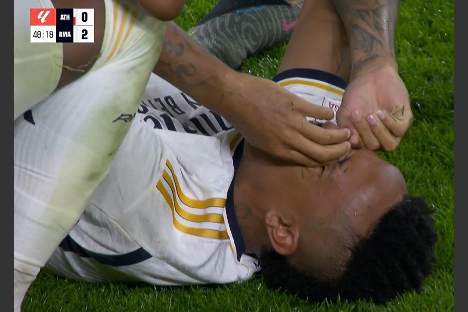 Miliato perseguía a un delantero del Athletic Club, cuando de pronto, tras un recorte del rival, Militao se resbala y su pierna sufrió una dolorosa contracción en la rodilla por el movimiento que realizó y de inmediato cayó al suelo.