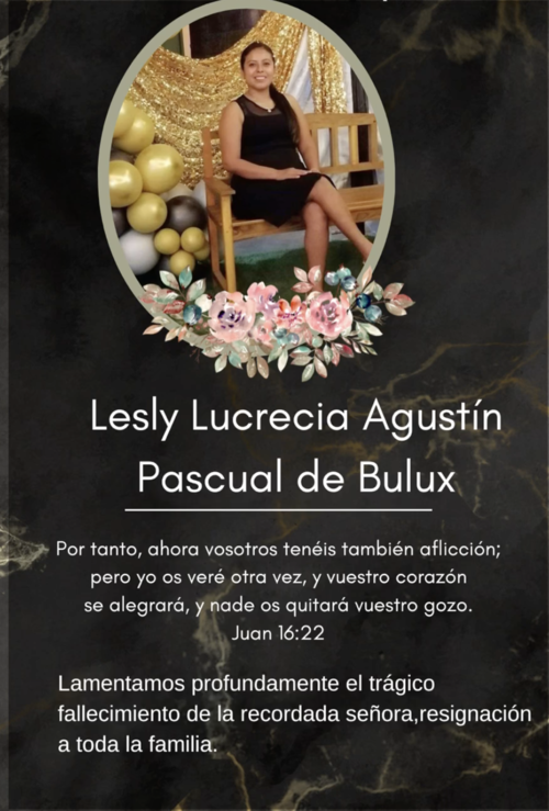 Al llegar al lugar, los Bomberos Voluntarios evaluaron a la víctima y confirmaron que ya había fallecido. Fue identificada por familiares como: Lesly Lucrecia Agustín Pascual, de 33 años.
