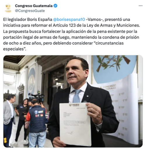 El diputado por Chiquimula, Boris España, considera que algunas personas son sentenciadas de manera injusta por portar armas sin licencia, y por ello impulsa una modificación a la Ley de Armas y Municiones.