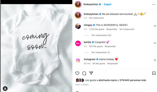 "¡Estamos bendecidos y emocionados!", escribió en un post de Instagram junto a una imagen de un trajecito de bebé con el lema: "Muy pronto".