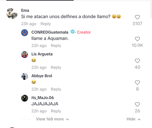Y es que un usuario preguntó con humor a Conred: "Si me atacan unos delfines, ¿a dónde llamo?".