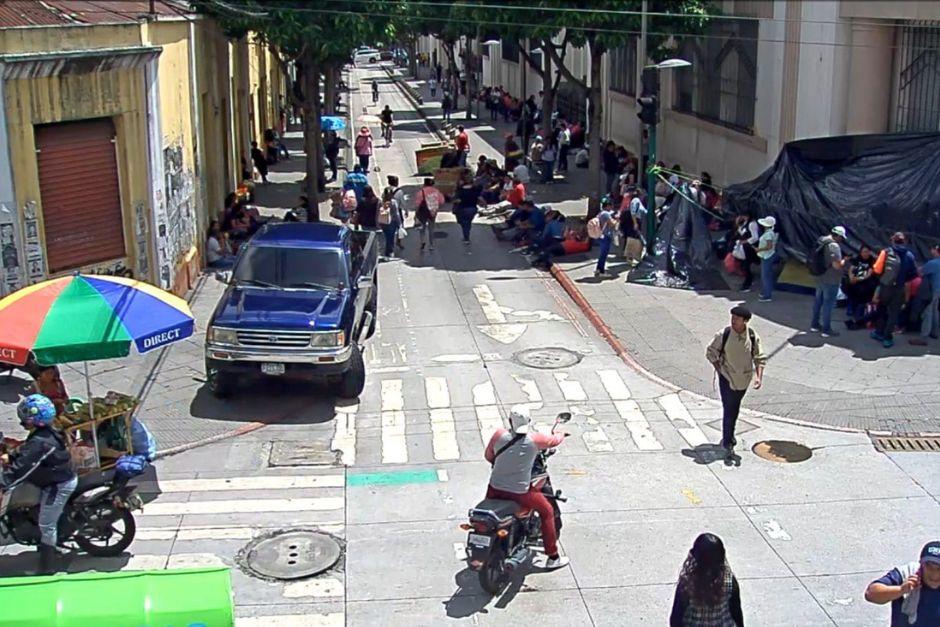 Alerta porque tras presencia de mentores sobre 6 avenida desde 4 calle para 6 calle zona 1, no hay tránsito de vehículos frente a la Casa Presidencial, ni para Portal del Comercio.