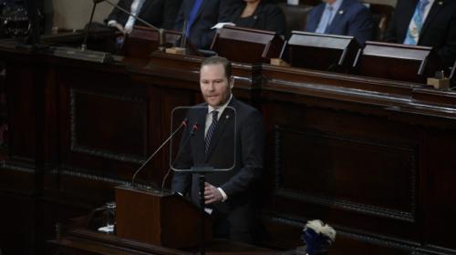 El parlamentario Estuardo Galdámez optó por vestir un saco con los colores tradicionales de Nebaj, Quiché.