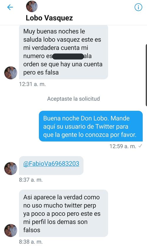 "El Lobo" tuvo que aclarar cuál es su cuenta real en Twitter, pues señaló que ya existen varias que son falsas y que aprovecharon el momento para engañar a los usuarios y atraer seguidores. La cuenta original es @FabioVa69683203.
