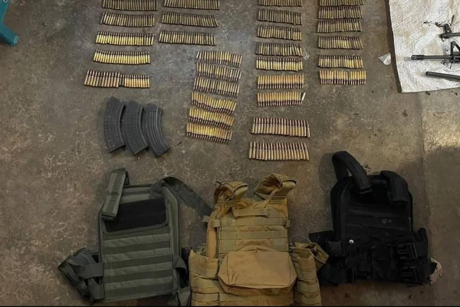 De acuerdo con las autoridades, fueron encontradas 13 armas de fuego. Entre ellas, tres fusiles, 2 subametralladoras, 8 pistolas y cuatro chalecos antibalas.