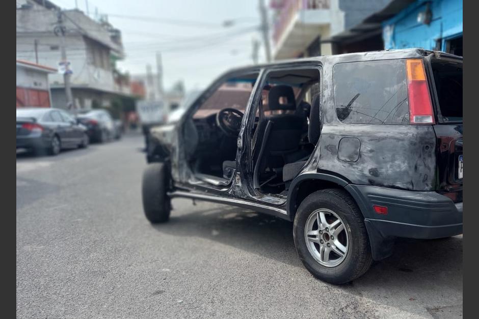 Según las autoridades, las diligencias se realizaron en la sección "K", lote 49 de la colonia El Milagro, en la zona 6 de Mixco, en donde encontraron la camioneta de marca CRV, desmantelada y con injerto de chasis.