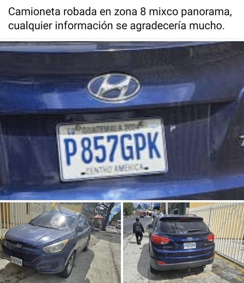 En el aviso detallaba que se trataba de una camioneta Hyundai de color azul, con placas P-857GPK y que el robo se había registrado en la colonia Panorama.