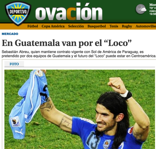 En el primer párrafo de la nota destacan: "La carrera de Sebastián Abreu puede tener un nuevo destino: Guatemala. Dos equipos del fútbol de ese país están buscando cerrar la contratación del delantero que aún mantiene vínculo con Sol de América de Paraguay (contrato hasta el 31 de diciembre de este año)".