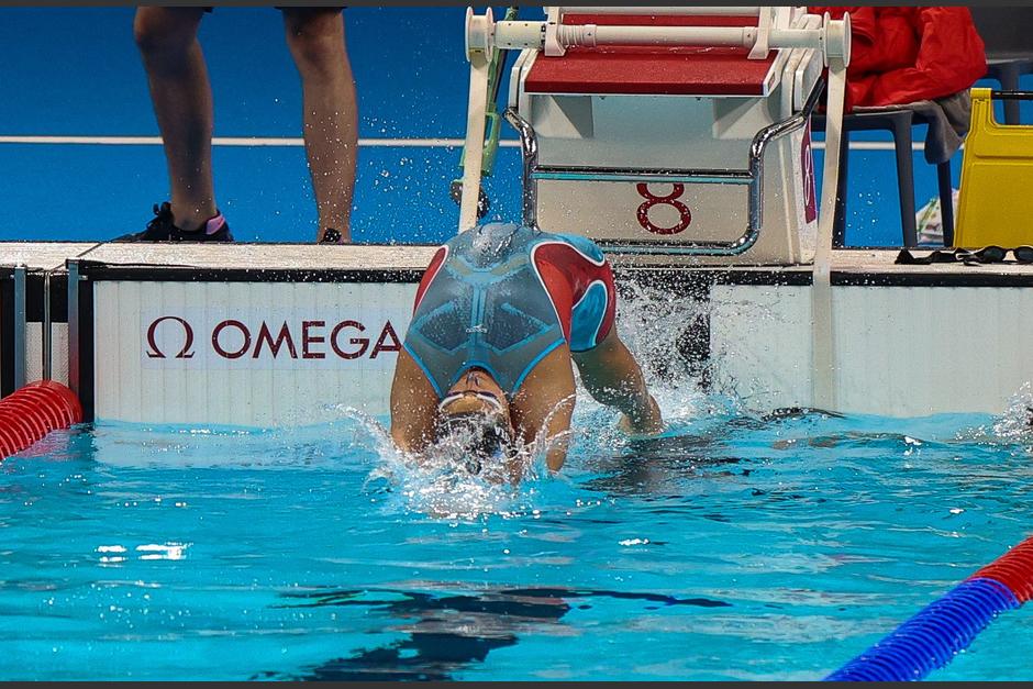 Lucero Mejía se sumergió este lunes en su participación en natación en la especialidad de 100 metros torso.