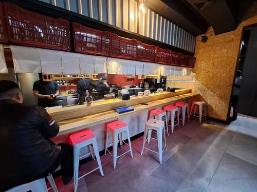 Antes de ingresar serás atendido por el anfitrión, quien te enseñará las tres áreas donde sentarte: dentro del restaurante, en la barra donde puedes tener una vista de los cocineros preparando los rollos de sushi o en la terraza. Te recomendamos la última opción para disfrutar de una tarde soleada.