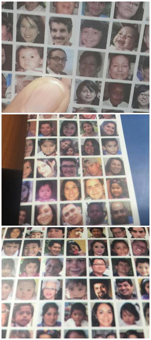 Sin embargo, no se puso el mismo empeño en la portada, en la que cerca de 1,926 fotos de rostros que componen un "collage" fueron extraídas de perfiles privados de Facebook y muchas se encuentran ahí sin autorización. Hay rostros de adultos, familias, niños y niñas, bebés e incluso algunas de bodas. Pero también hay otras sacadas de Wikipedia y "memes" que circulan por redes.