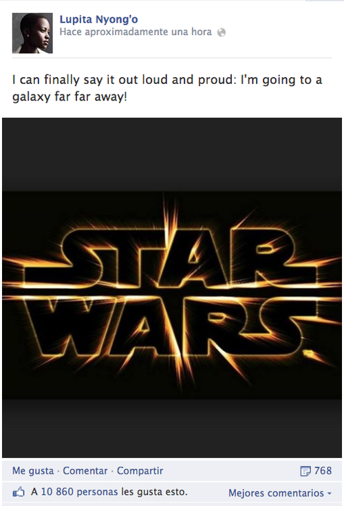 La keniana nacida en México Lupita Nyong'o, ganadora del Óscar a la mejor actriz de reparto por "12 Years a Slave", se unió al elenco de "Star Wars: Episode VII", informó hoy Lucasfilm.