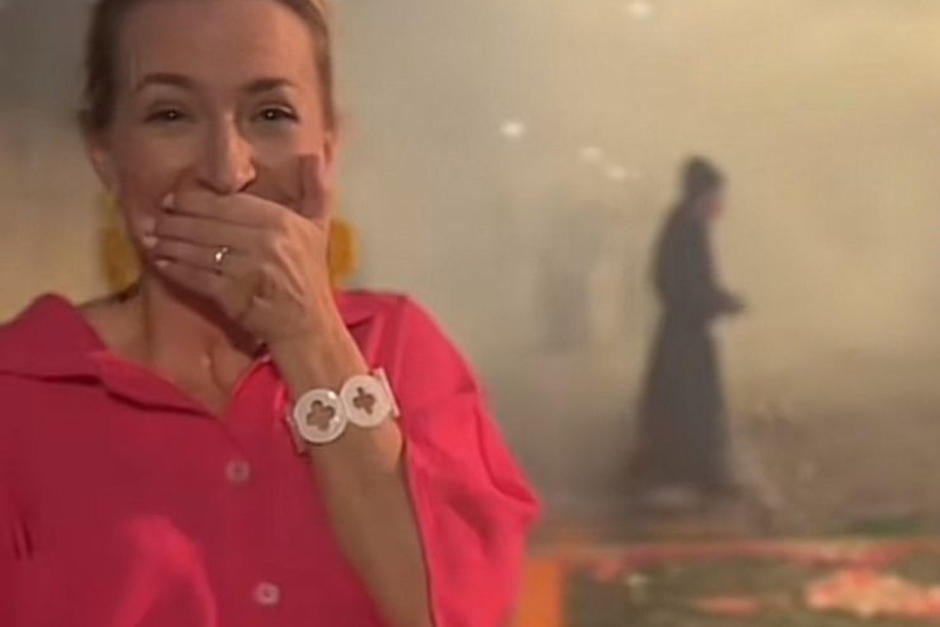 "De esto están hechos los sueños de los profesores de español", escribió en un clip donde ve cómo los encargados del incienso derraman ofrendas con el paso del anda.