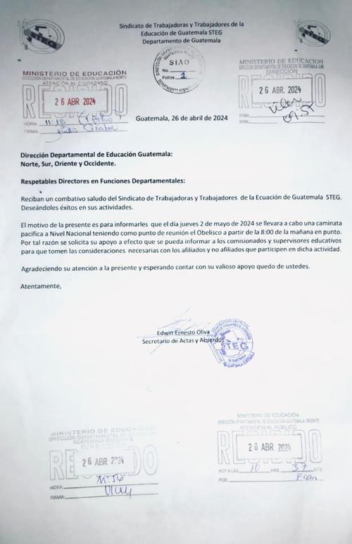 El sindicato del Magisterio de Trabajadores de la Educación (STEG) convocó a todos sus afiliados para participar en una marcha para este jueves 2 de mayo.