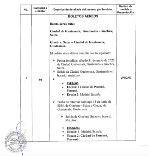 En el evento de Guatecompras se leen los requisitos que solicitaron para la compra de los boletos aéreos, entre estos: