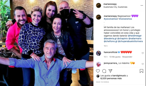 María Renée Pérez Yonker publicó un "en vivo" que realizó durante una cena con Mario Vallar, Heidy Melgar, La Valeria, Tito Rivera y el chef Toño, equipo con el que compartió varias de sus mañanas durante más de 2 años.
