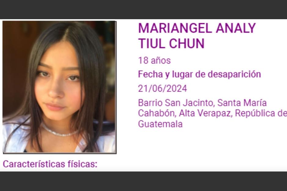 El Ministerio Público (MP) confirmó a Soy502 que continúan realizando la búsqueda de Mariangel Analy Tiul Chun, quien fue vista por última vez el 21 de junio, un día antes de cumplir 18 años.