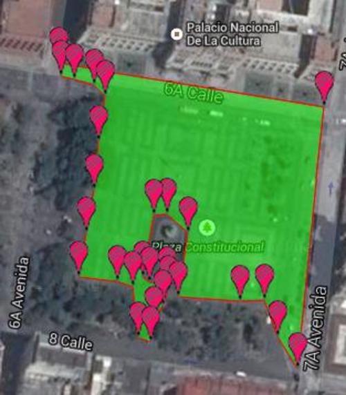 Para la medición tomamos como base estos datos: el área ocupada del parque central durante la protesta #RenunciaYa era de aproximadamente 12 mil 701 metros cuadrados. Calculamos una densidad de 2.5 personas por metro cuadrado (2.5 es una media entre la parte de enfrente de la Plaza, donde hay 4 por metro cuadrado y la de atrás, donde incluso hay áreas vacías) y eso nos da un total de 31 mil 750 personas manifestando.