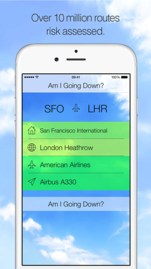 La receta para superar esa fobia de Nic Johns, un desarrollador de la compañía Vanilla Pixel con sede en Londres, fue crear la aplicación “Am I Going Down”, que en base a estadísticas analiza la seguridad de los vuelos.
