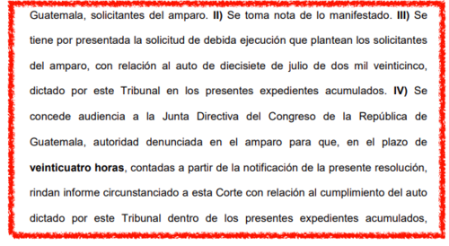 La dirigida por Jorge Castro conservó el control del bloque hasta que un amparo promovido por el partido político obligó a que Evelyn Morataya y Gustavo Cruz fueran declarados independientes.