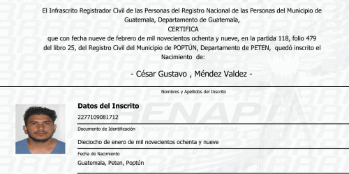 Este no es el primer caso judicial para Méndez Valdez. Con apenas 30 años, ha sido sentenciado en dos ocasiones. La primera condena fue por portar ilegalmente armas de fuego y la segunda por violencia contra la mujer. Esos dos delitos los cometió en Poptún, Petén, el lugar en el que nació. Que luego residiera en Nueva Concepción quizá se deba a que parte de su familia es oriunda de ese municipio, según documentos del Registro Nacional de las Personas.