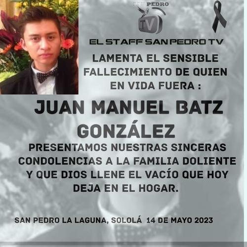 Juan Manuel Batz González, un joven médico originario de San Pedro La Laguna iba abordo de su vehículo sobe la ruta Interamericana cuando por razones desconocidas perdió el control y se precipitó a un barranco perdiendo de forma instantánea la vida.
