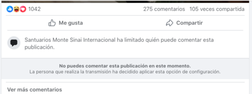 Hasta hace algunos días, usuarios podían comentar con libertad y enviar mensajes en Facebook a Santuarios Monte Sinaí Internacional, iglesia evangélica que se viralizó semanas atrás.