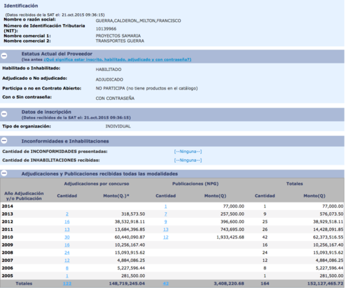 El ahora diputado, ha sido contratista del Estado. Entre 2005 y 2014 sus empresas de transporte recibieron Q.152.1 millones de instituciones públicas, entre municipalidades y entidades del Organismo Ejecutivo.