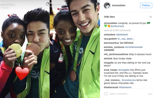 La química entre ambos empezó meses atrás. Estuvieron juntos en 2015 durante el World Artistic Gymnastics Championships en Glasgow, Reino Unido, donde disfrutaron de increíbles momentos juntos e incluso Arthur compartió fotos de su encuentro en su cuenta oficial de Instagram.