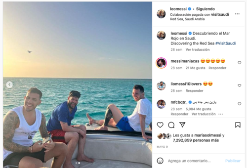 En enero del 2021, el diario británico "The Daily Telegraph" informó que Cristiano Ronaldo rechazó una oferta por 6 millones de euros por año para promover el turismo saudita. The Athletic aseguró que de acuerdo a sus fuentes, el acuerdo al que llegó Lionel Messi podría ser superior "hasta cinco veces más" que la tarifa anual aparentemente ofrecida al astro portugués.