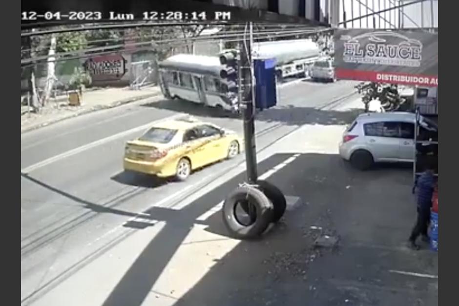 Una cámara de seguridad captó el momento en que se produjo un fuerte accidente de tránsito, en el que estuvo involucrado un microbús con pasajeros y un vehículo del transporte pesado.