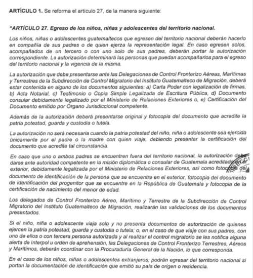 El Instituto Guatemalteco de Migración modificó el reglamento migratorio en el cual se incluyen varios cambios a los requisitos para el egreso de menores de edad del territorio guatemalteco.