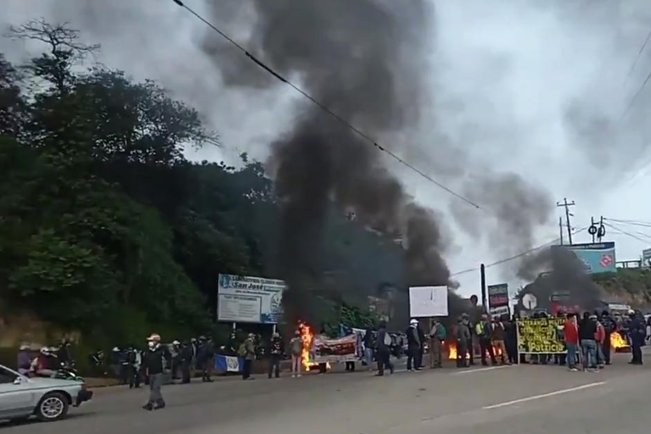 En el kilómetro 69 de la ruta Interamericana, en jurisdicción de Patcizía, Chimaltenango, un grupo de manifestantes que dicen pertenecer a la Asociación de Veteranos Militares Miembros de la Tropa del Ejército de Guatemala (Avemitregua) queman llantas para bloquear el tránsito de vehículos.