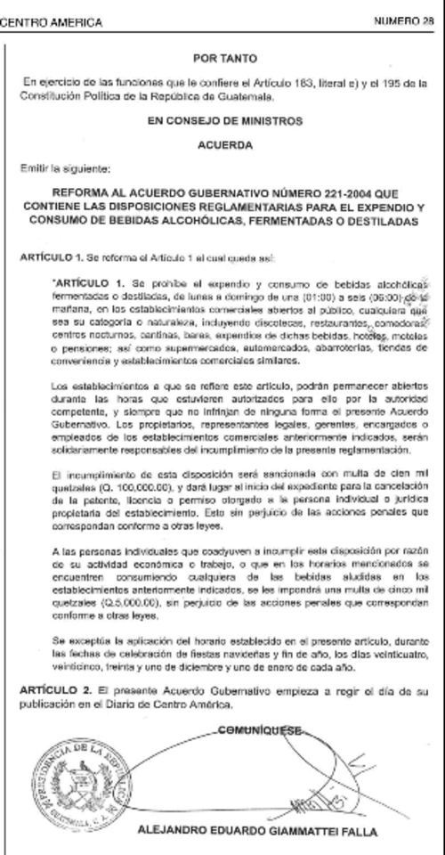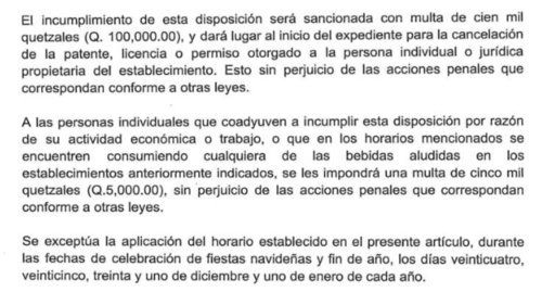 El establecimiento que incumpla estas medidas recibirá una multa de Q100,000, así como retirarle la patente o permiso comercial para continuar sus operaciones.