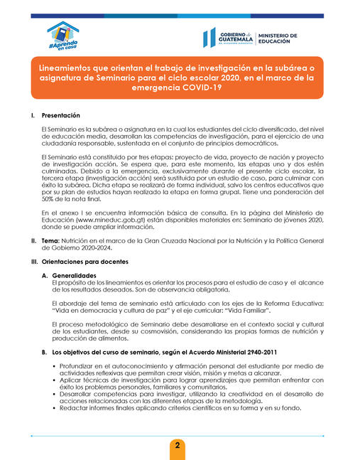 El Ministerio de Educación (Mineduc) dio a conocer los lineamientos para culminar el trabajo de investigación en la asignatura de Seminario para el ciclo escolar 2020