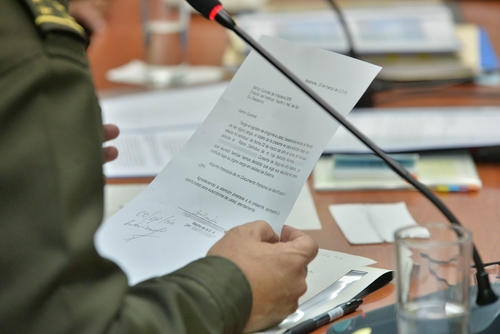 El Ministro de Defensa lee la carta de la madre de la estudiante agraviada. (Foto: Wilder López/Soy502)