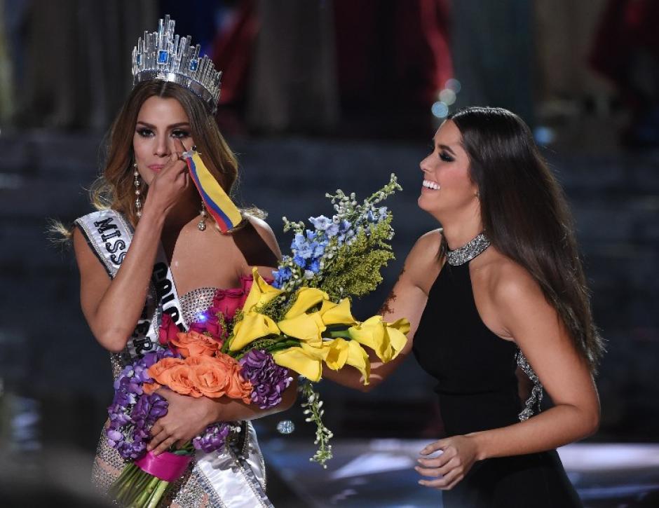 Tras la confusión provocada por el error de un presentador que nombró a Ariadna Gutiérrez, Miss Colombia, como la ganadora de Miss Universo 2015, la joven tuvo que devolver la corona y buscar apoyo entre sus compañeras.