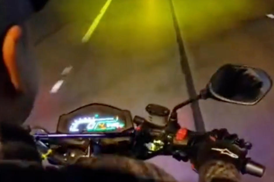 Una extraña figura sorprendió a un motorista y su acompañante que viajaban en una carretera de la ciudad.